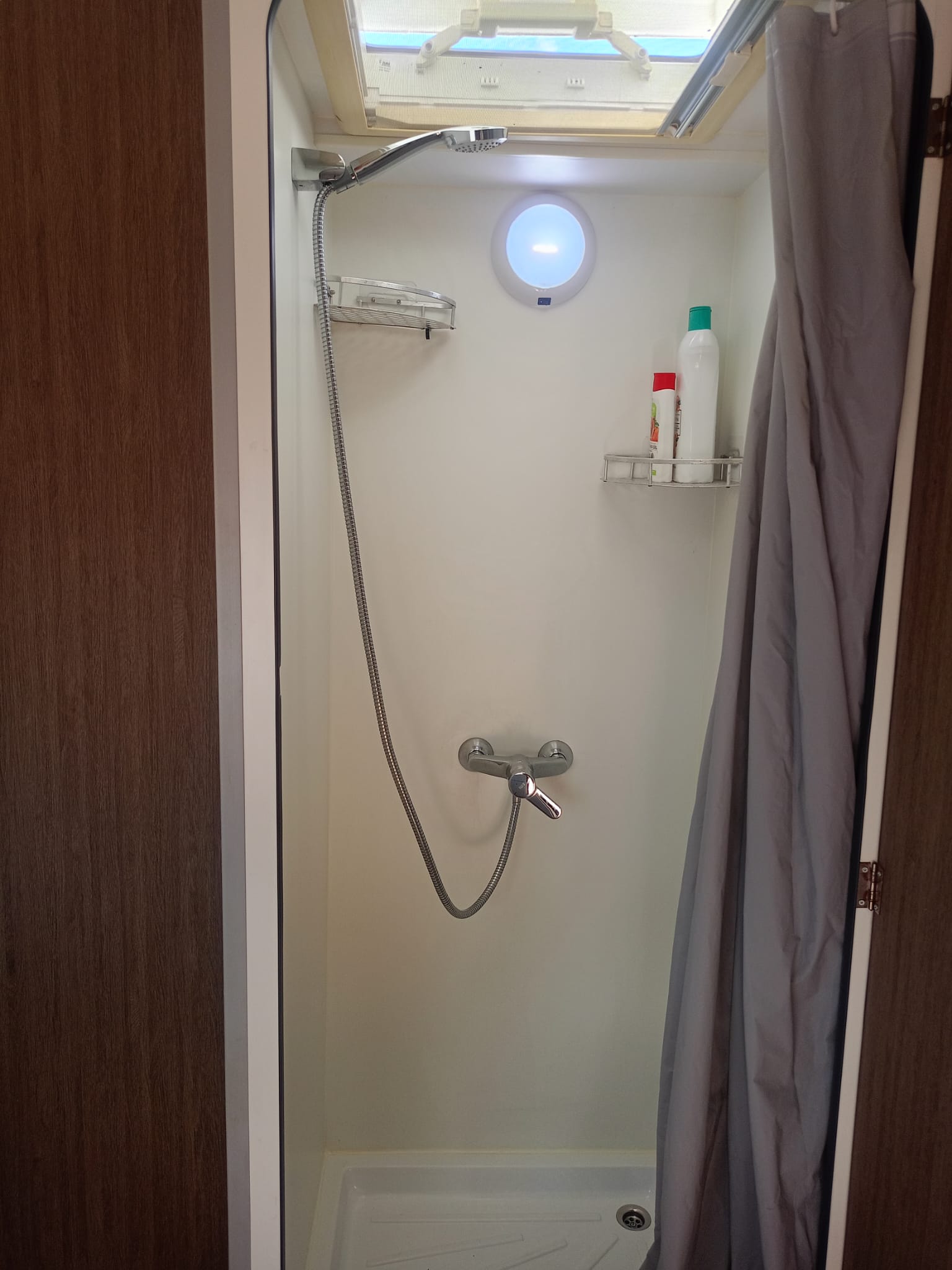 Sistema de agua: medidor de nivel de aguas limpias, tanque de 90L y dos tanques de aguas grises.