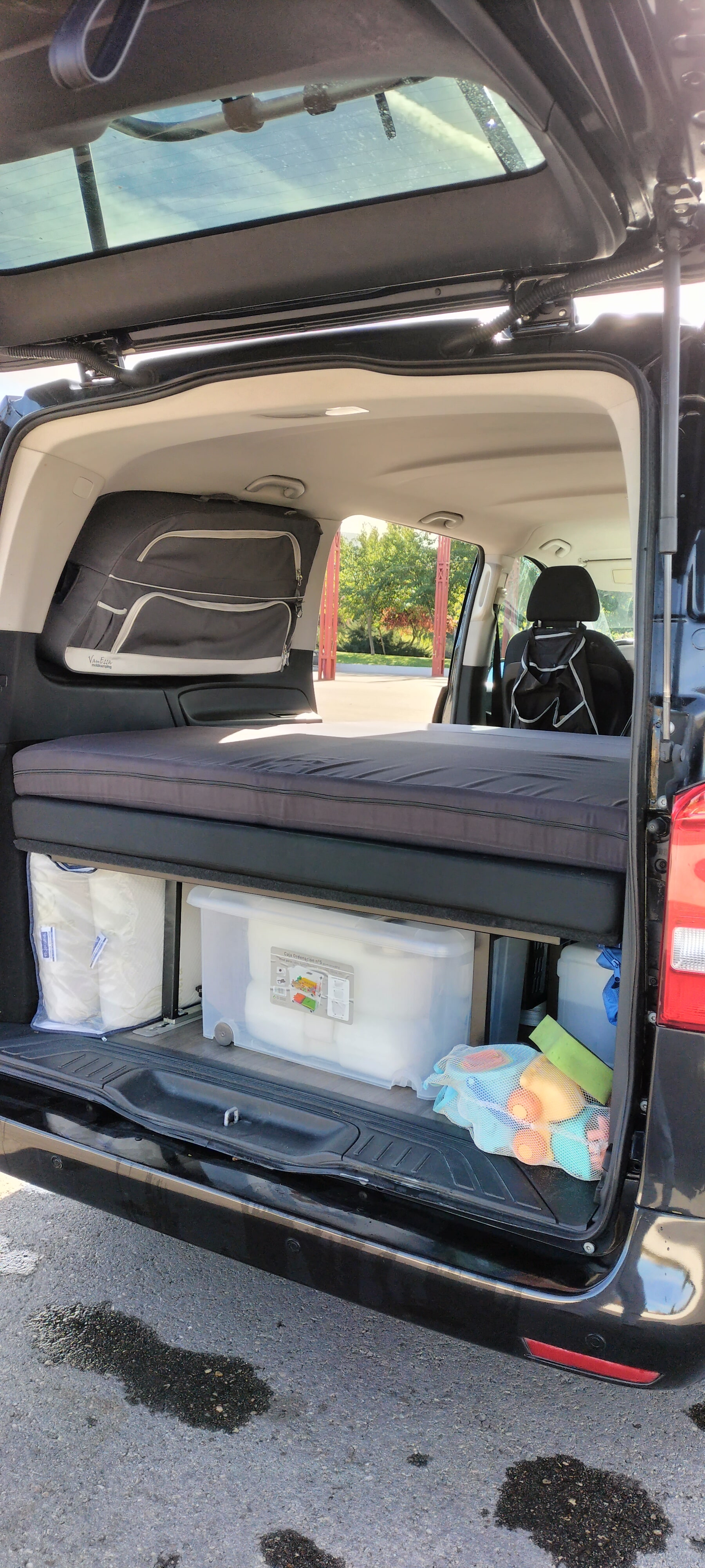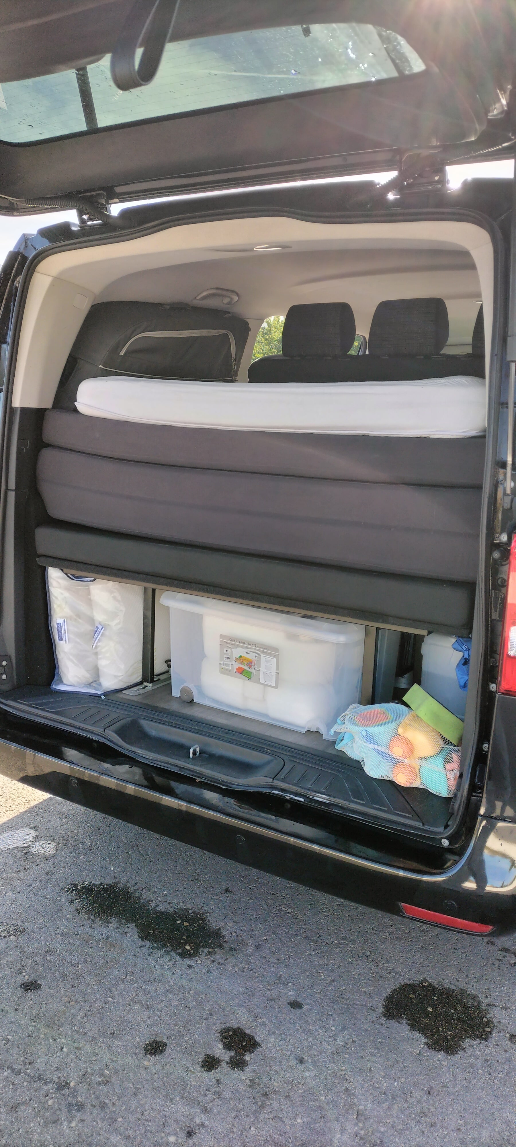Camperización con asiento cama con cajón integrado y suelo de vinilo
