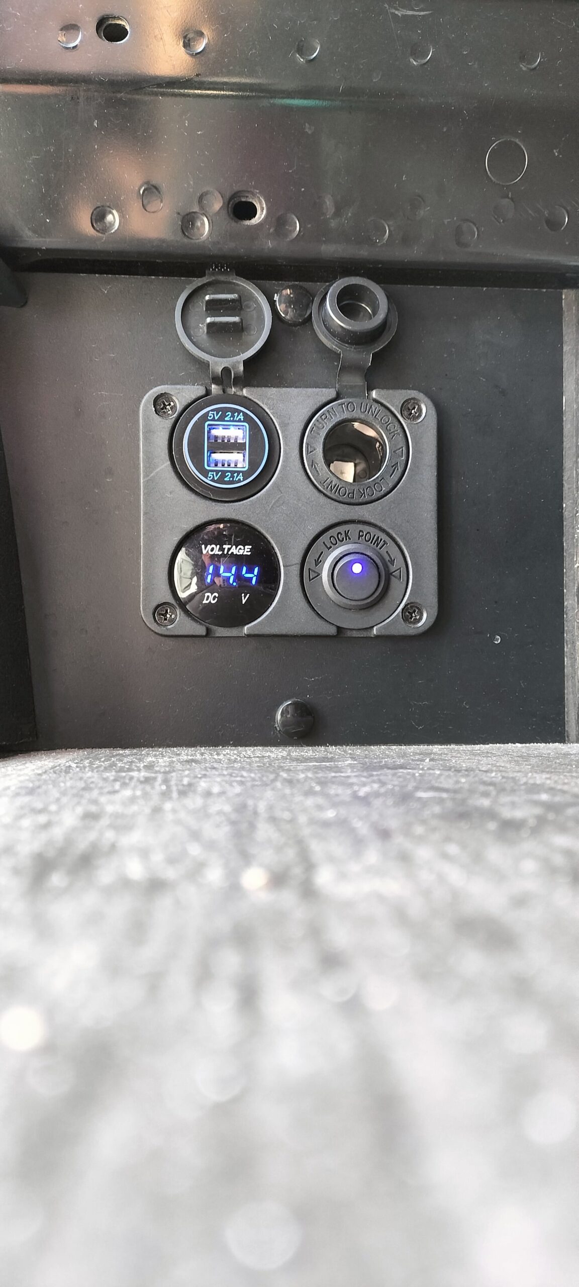 Segunda batería recién cambiada conectada a placa solar flexible (aguanta hasta 4 días con la nevera conectada sin mover la furgoneta)