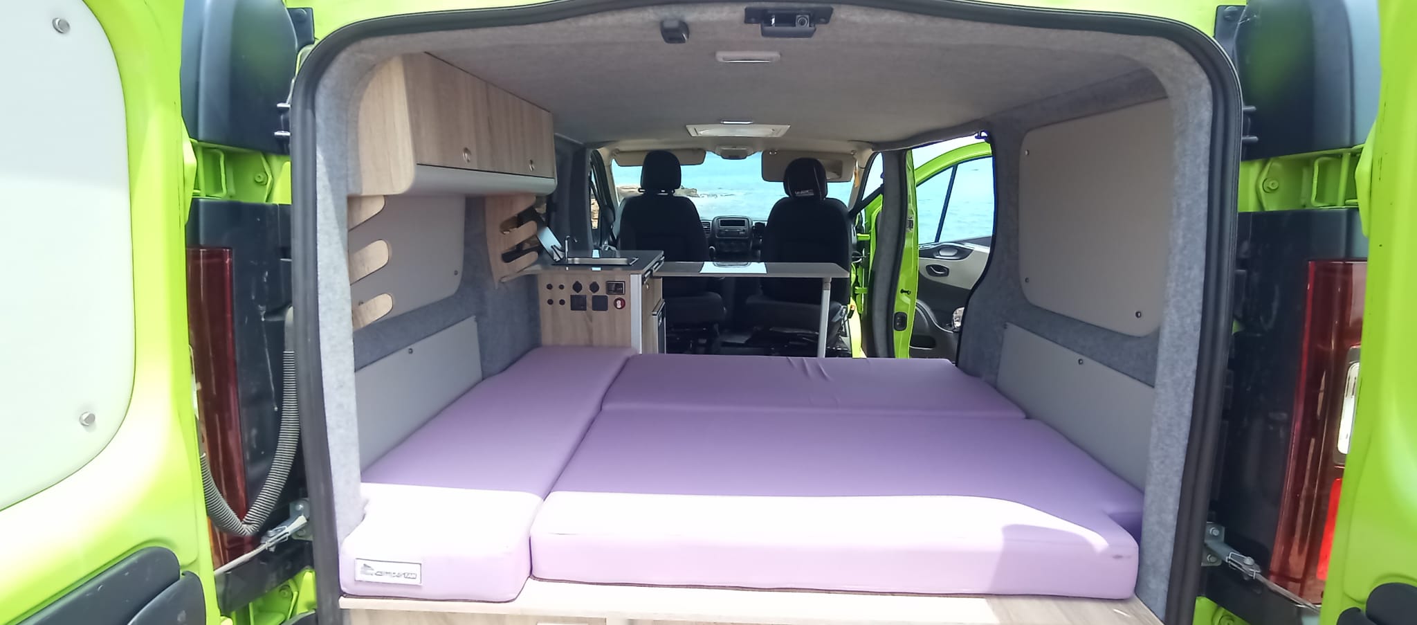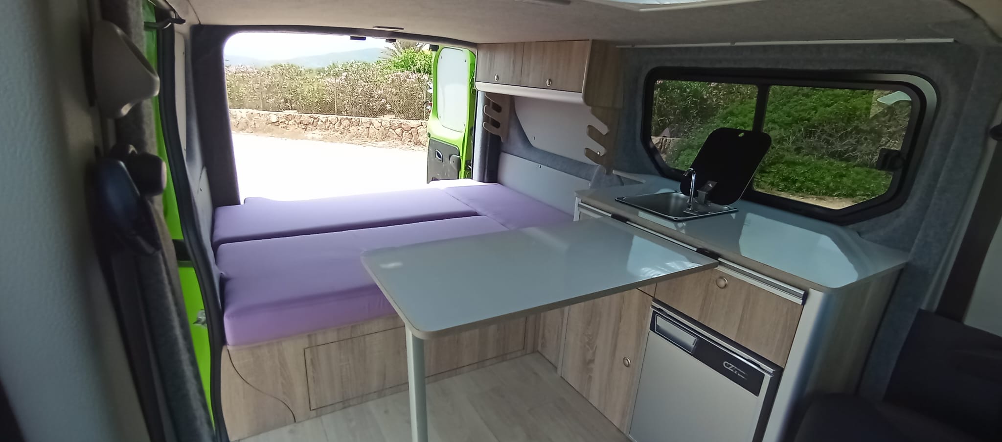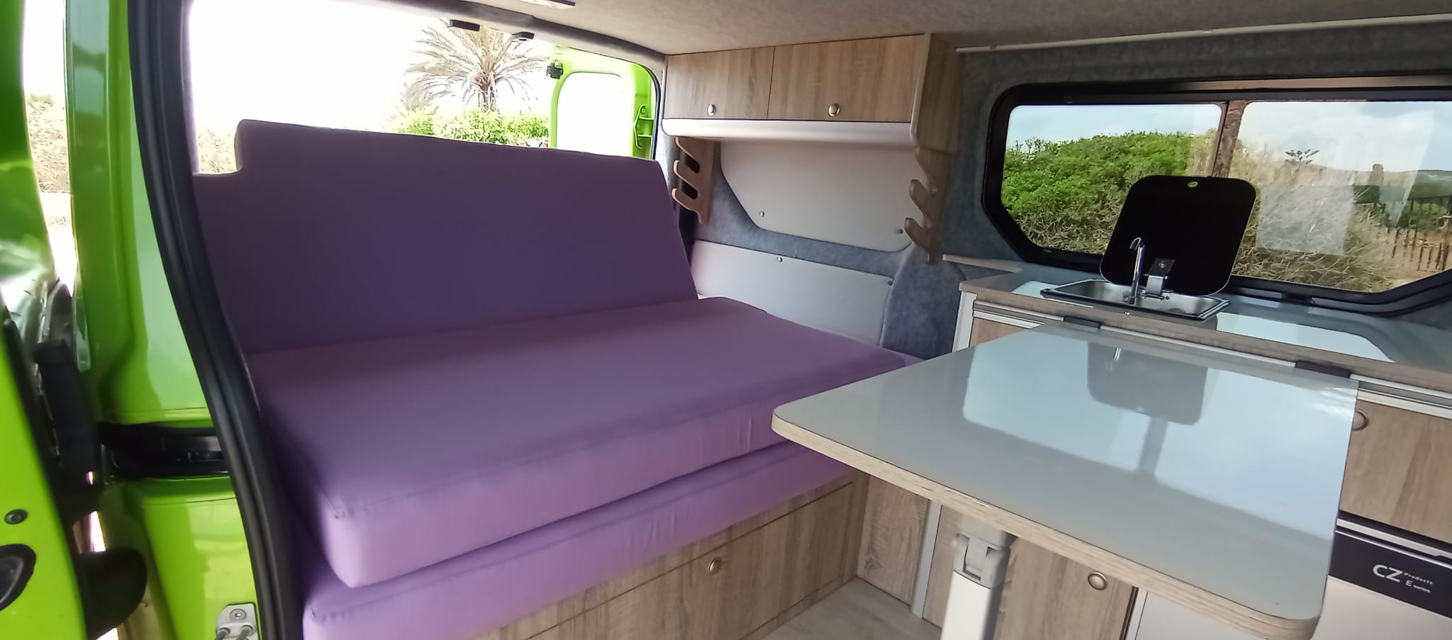 placas solares,baca,porta bicis 2,claraboya techo,asientos delanteros giratorios,toldo lateral,calefaccion centralizada,sofa cama matrimonio colchon visco,depositos de aguas sucias y limpias y boton vaciado,beterias auxiliar ,nevera, fregadera,instalacion usb,alumbrado interior led,etc…