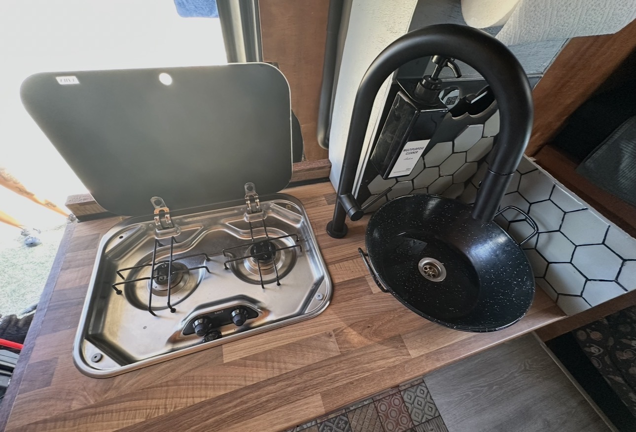 La furgoneta está camperizada en casa, pero con la instalación eléctrica, de agua y gas, en empresa profesional.