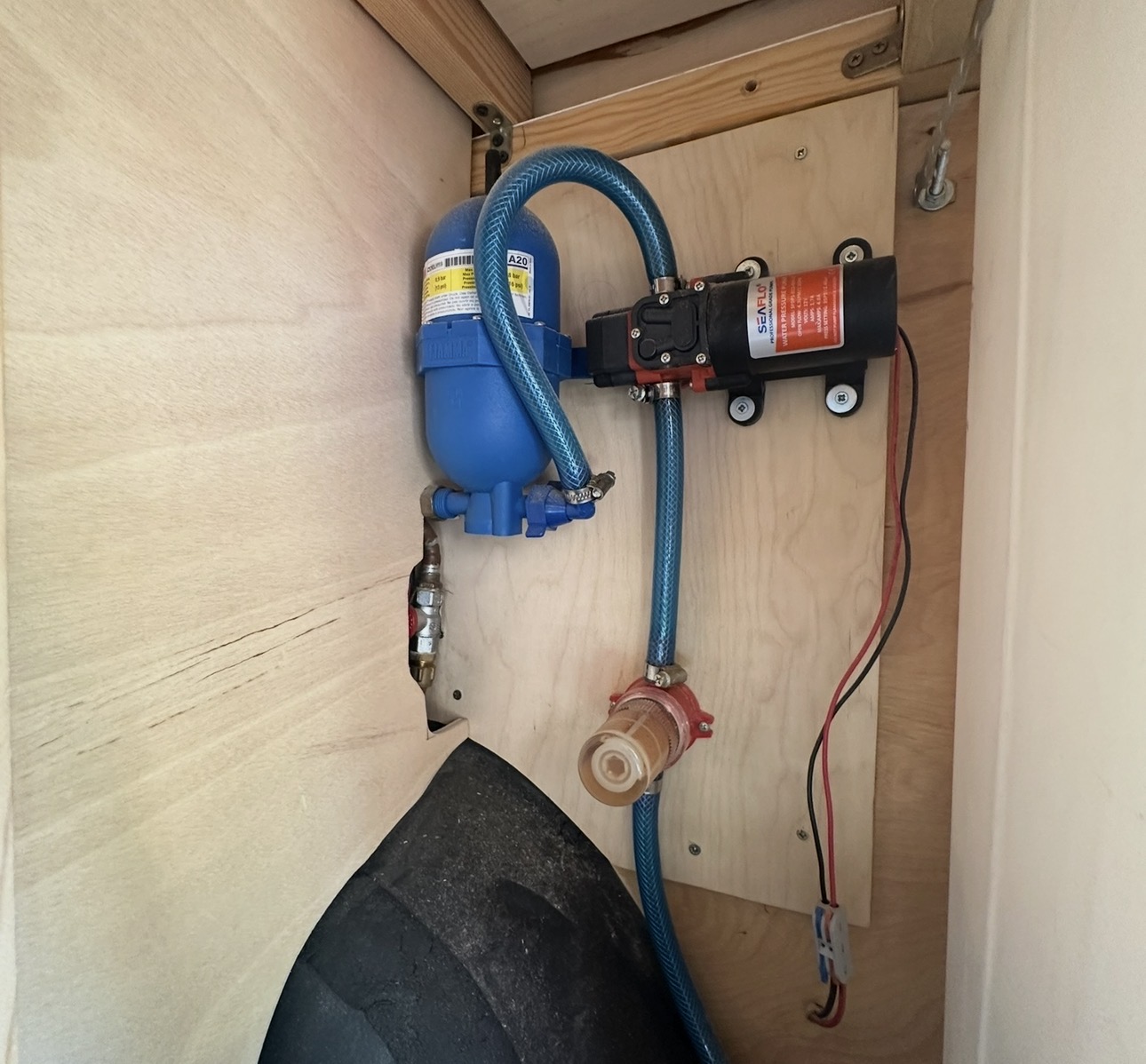 Depósito de 75 L de agua limpia y 50 L de grises.